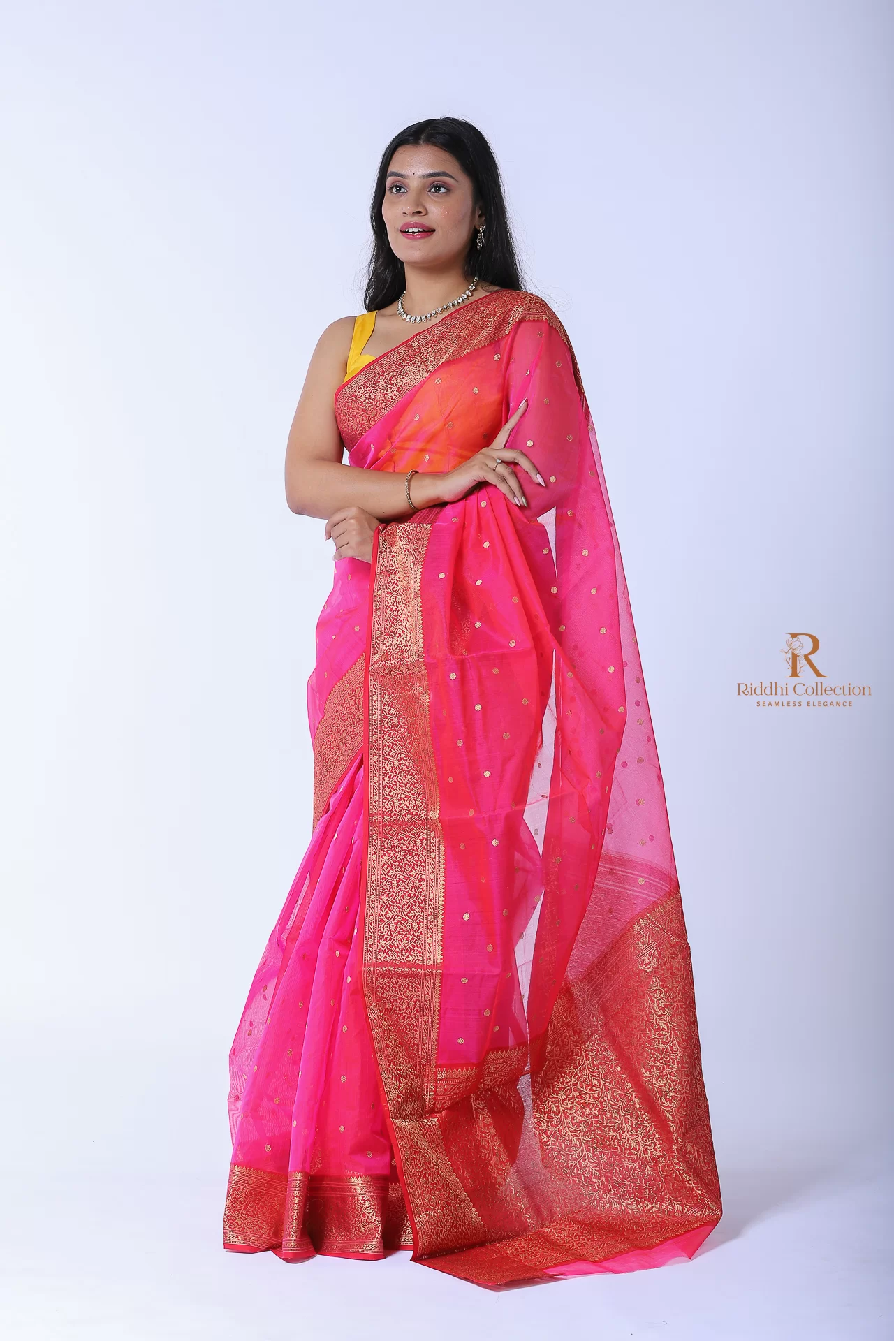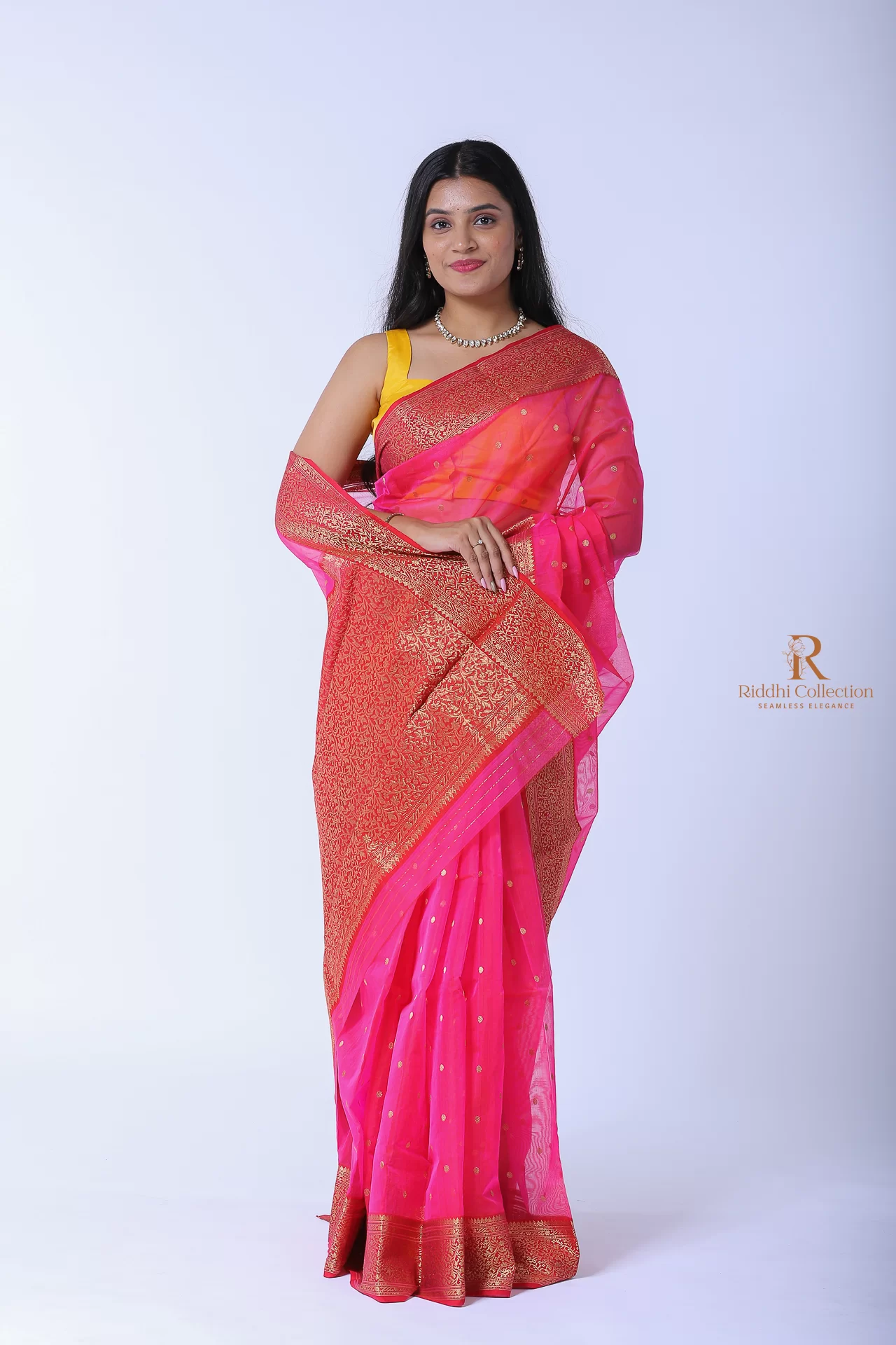 From luxurious silk sarees to versatile cotton drapes, and from designer blouses to custom dress materials, our collection caters to every taste and occasion. No matter your style, you’ll find something to love at Riddhi Collection.